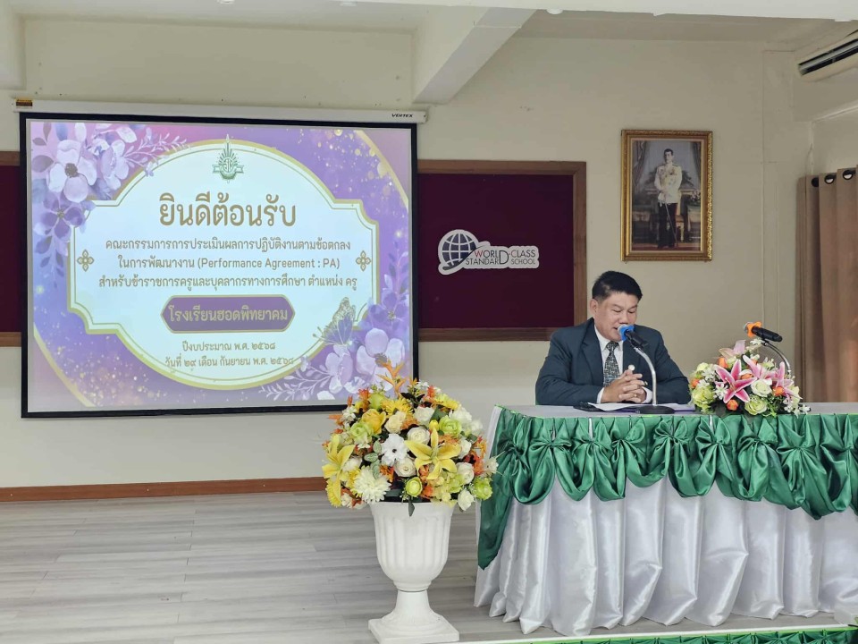 นายวินัย บุญชุ่มใจ ผู้อำนวยการโรงเรียนฮอดพิทยาคม นายพลวัฒน์ ชัยชนะ รองผู้อำนวยการฝ่ายวิชาการ นายมนัส ตันมูล รองผู้อำนวยการฝ่ายกิจการนักเรียน และคณะครู ให้การต้อนรับคณะกรรมการและเข้ารับการประเมินผลการปฏิบัติงานตามข้อตกลงในการพัฒนางาน (Performance Agreement : PA) สำหรับข้าราชการครูและบุคลากรทางการศึกษา ตำแหน่ง ครู โรงเรียนฮอดพิทยาคม ปีงบประมาณ พ.ศ. 2568 ณ โรงเรียนฮอดพิทยาคม อำเภอฮอด จังหวัดเชียงใหม่